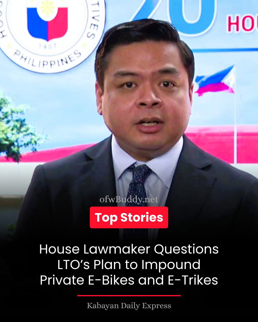 House Lawmaker Questions LTO’s Plan to Impound Private E-Bikes and E-Trikes