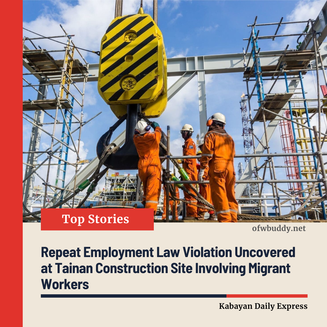 Repeat Employment Law Violation Uncovered at Tainan Construction Site Involving Migrant Workers