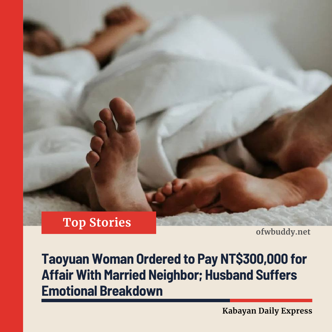 Taoyuan Woman Ordered to Pay NT$300,000 for Affair With Married Neighbor; Husband Suffers Emotional Breakdown