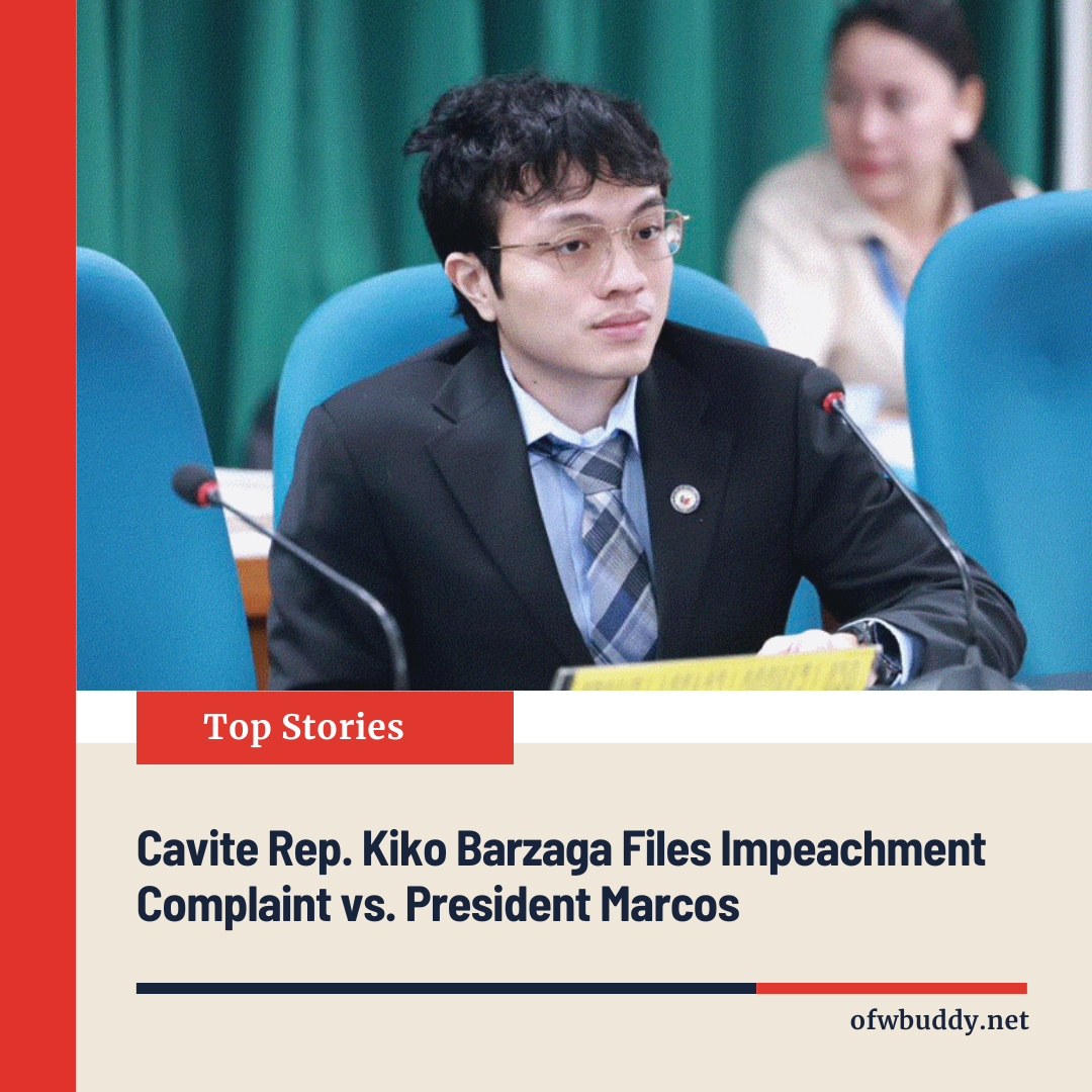 MANILA (October 9, 2025)— Cavite 4th District Representative Francisco “Kiko” Barzaga surprised viewers in his latest vlog on October 8 by revealing that he had prepared an impeachment complaint against President Ferdinand Marcos Jr.