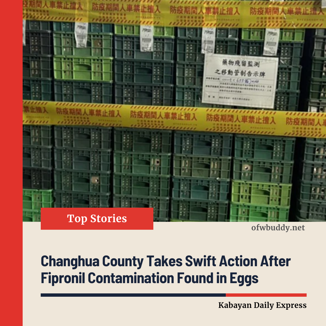 Authorities in Changhua County have launched strict control and safety measures following the discovery of fipronil contamination in eggs from Wenya Livestock Farm. The contamination was confirmed after laboratory tests detected trace amounts of the banned pesticide in both egg and feather samples from the farm.
