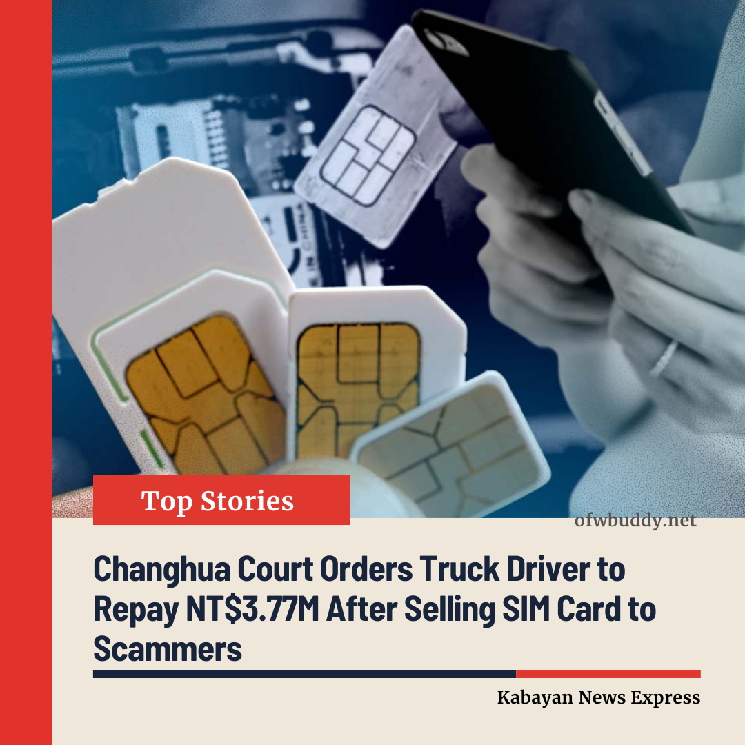 Changhua County, Taiwan — February 2, 2026 — A district court in Changhua has ordered a 21-year-old truck driver to fully compensate a fraud victim after selling his mobile phone SIM card to a scam syndicate for a small profit, a transaction that ultimately led to losses exceeding NT$3.77 million.