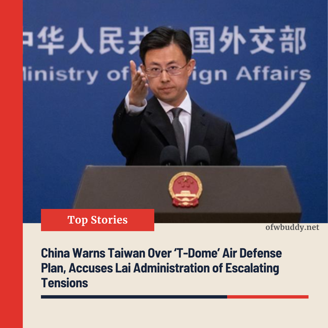 TAIPEI (October 11, 2025)— Chinese authorities have warned that Taiwan’s efforts to strengthen its defense through the newly announced “Taiwan Shield” (T-Dome) project could heighten regional tensions, accusing the Lai Ching-te administration of pursuing independence through military means.