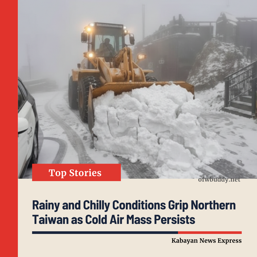 Taiwan’s Central Weather Administration (CWA) reported that a combination of an eastward-moving cloud system from South China and a continental cold air mass is affecting weather conditions across the island on Saturday, bringing widespread rainfall and cooler temperatures, particularly in northern and central regions.