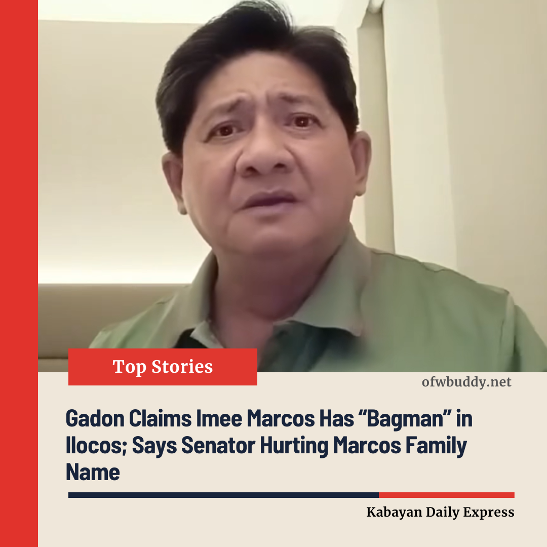 MANILA, Philippines (November 18, 2025)— Presidential Adviser on Poverty Alleviation Larry Gadon has intensified his criticism of Sen. Imee Marcos, accusing her not only of having a “bagman” involved in alleged questionable Department of Public Works and Highways (DPWH) projects in Ilocos, but also of damaging the reputation of her own family.