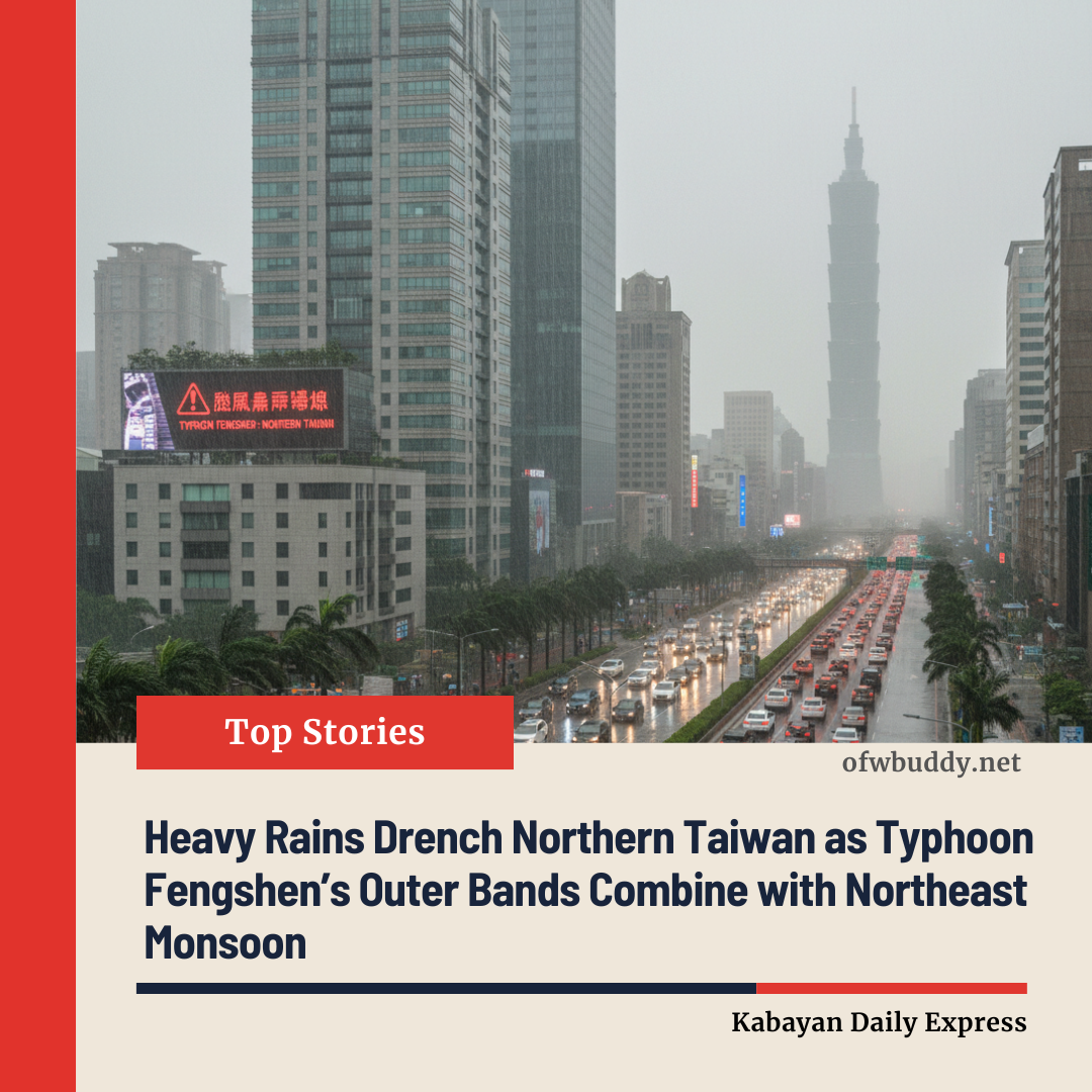 Northern Taiwan woke up to widespread rainfall on Monday morning as the combined effects of Typhoon Fengshen’s outer circulation and the northeast monsoon brought heavy downpours across the region. Commuters on their way to work and school were caught in the rain, with weather authorities warning that the wet conditions could persist through tomorrow night.