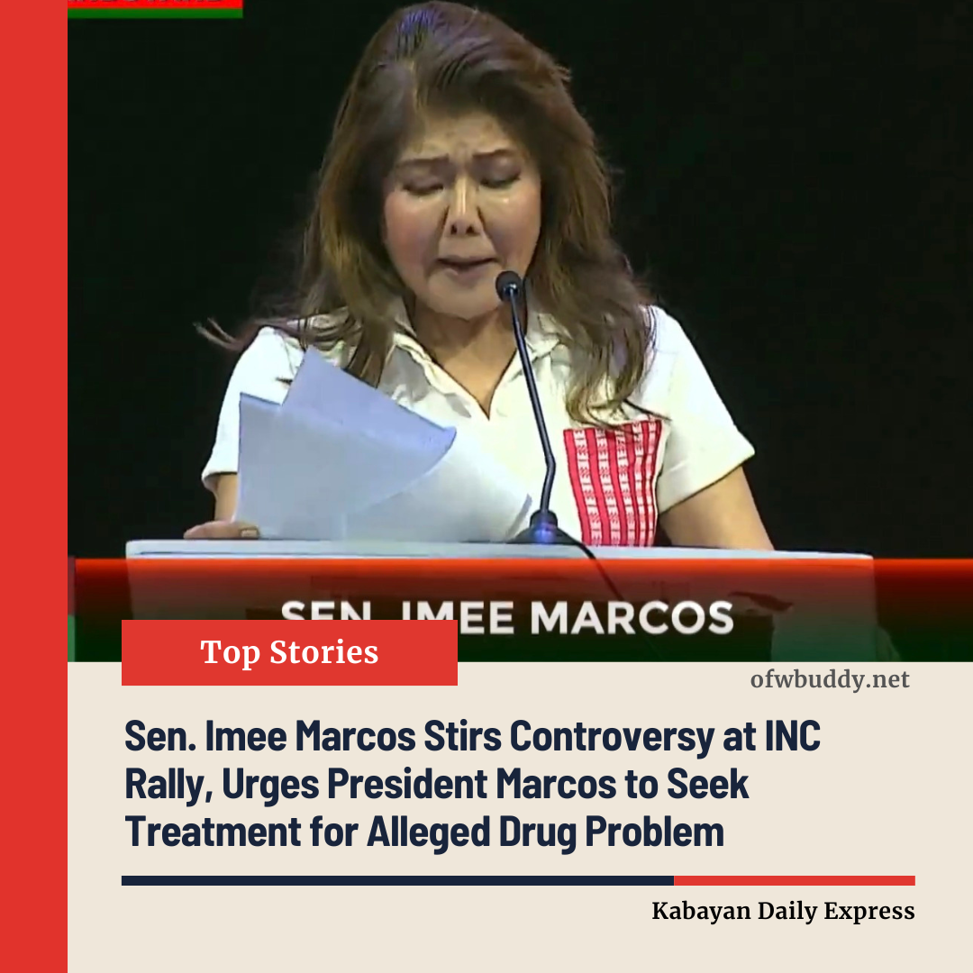 MANILA, Philippines (November 18, 2025)— Senator Imee Marcos shocked attendees at a massive Iglesia ni Cristo (INC) protest rally on Tuesday, November 17, when she publicly appealed to her brother, President Ferdinand Marcos Jr., to undergo treatment for what she claimed was a long-standing drug dependency.