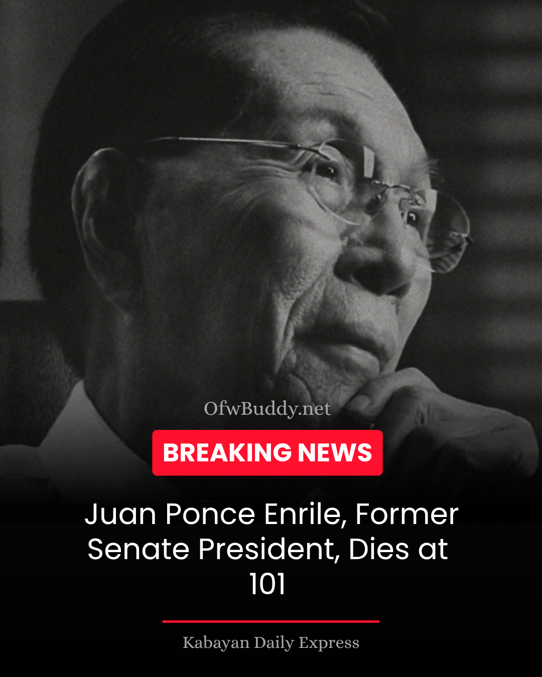 Manila, Philippines — November 13, 2025 — Chief Presidential Legal Counsel and former Senate President Juan Ponce Enrile has passed away at the age of 101, his daughter Katrina Ponce Enrile confirmed on Thursday.