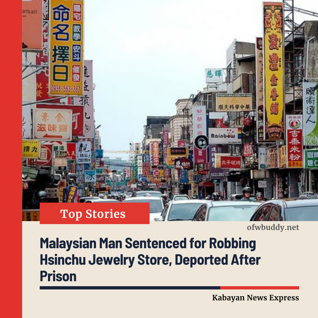 Hsinchu, Taiwan — February 8 — A Malaysian man, who had been overstaying in Taiwan for seven years, was sentenced to two years and four months in prison for robbing a jewelry store in Hsinchu City. Authorities said he stole a gold necklace worth over NT$673,000 before attempting to flee and later selling the jewelry in Taoyuan.