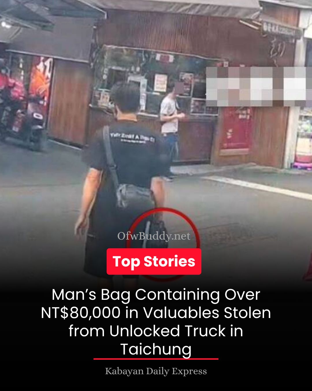 According to the police, the victim had parked his truck along Yizhong Street in the North District and left it unattended without locking the door. When he returned, he discovered that his shoulder bag—containing cash, a mobile phone, and earphones—was missing. The stolen items were valued at more than NT$80,000.