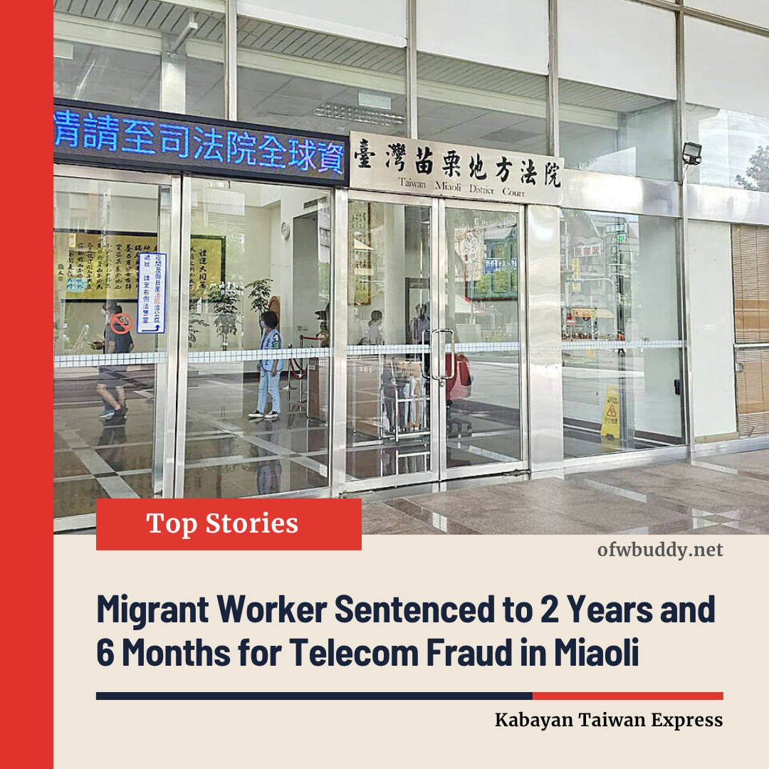 A migrant worker from Vietnam has been sentenced to two years and six months in prison after being found guilty of participating in a telecom fraud scheme in Miaoli County. The court also ordered his deportation after serving his sentence. The case remains under appeal.