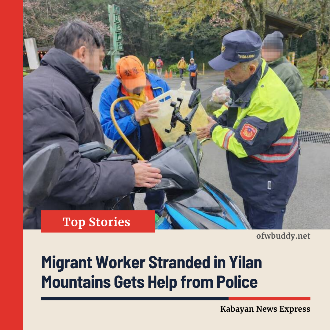 A 35-year-old Thai migrant worker traveling by motorcycle ran low on fuel while visiting the Mingchi Mountain Resort parking area along Beiheng Highway in Datong Township, Yilan County, today. Concerned about being stranded in the mountainous area, he sought assistance from local police, who promptly came to his aid.
