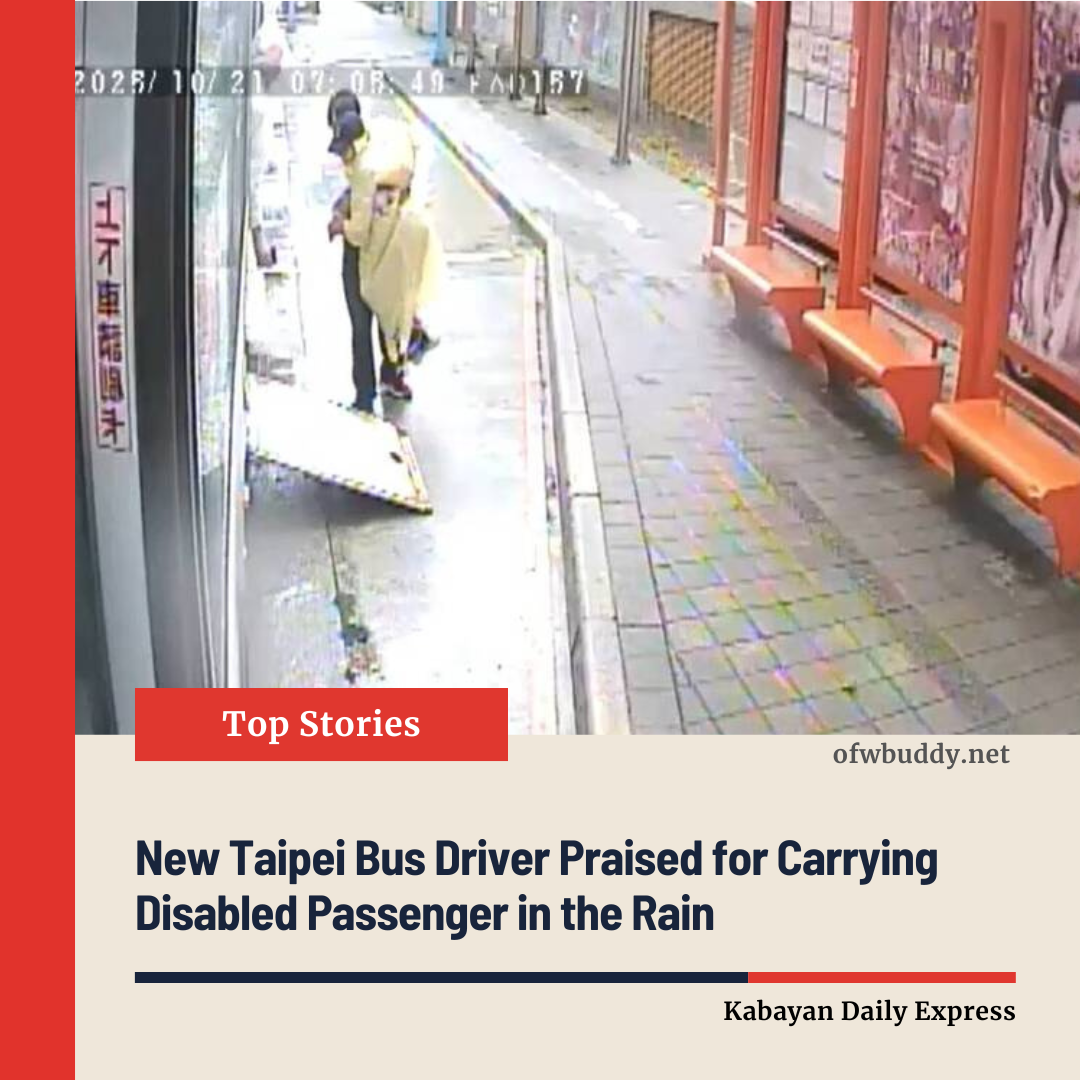 Taipei (October 26, 2025) – A touching moment unfolded in New Taipei City when a Sanchong Bus driver went above and beyond to help a passenger in need. On the morning of October 21, Route 857 driver Lin Rongxin noticed a 60-year-old woman with limited mobility struggling to board the bus amid heavy rain.