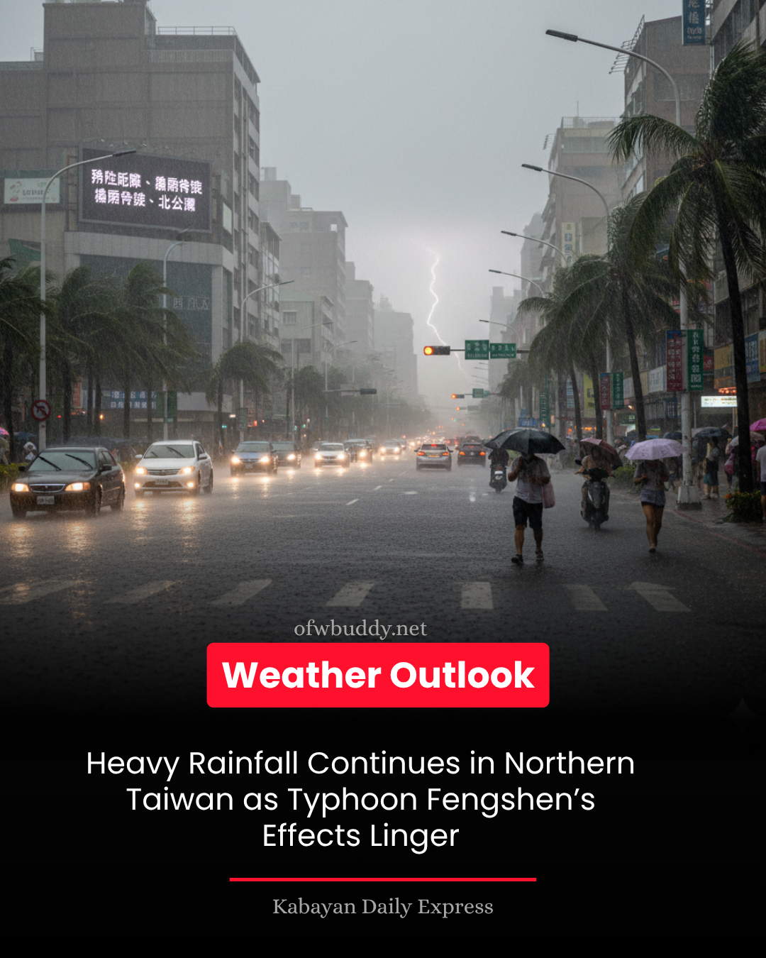 According to Lin’s Weather Station, while Typhoon Fengshen is gradually moving away, the northeast monsoon and low-pressure system will continue to dominate weather conditions. The pressure gradient is expected to peak from tonight into the first half of tomorrow, intensifying wind speeds. Authorities advise residents to remain vigilant and exercise extreme caution.