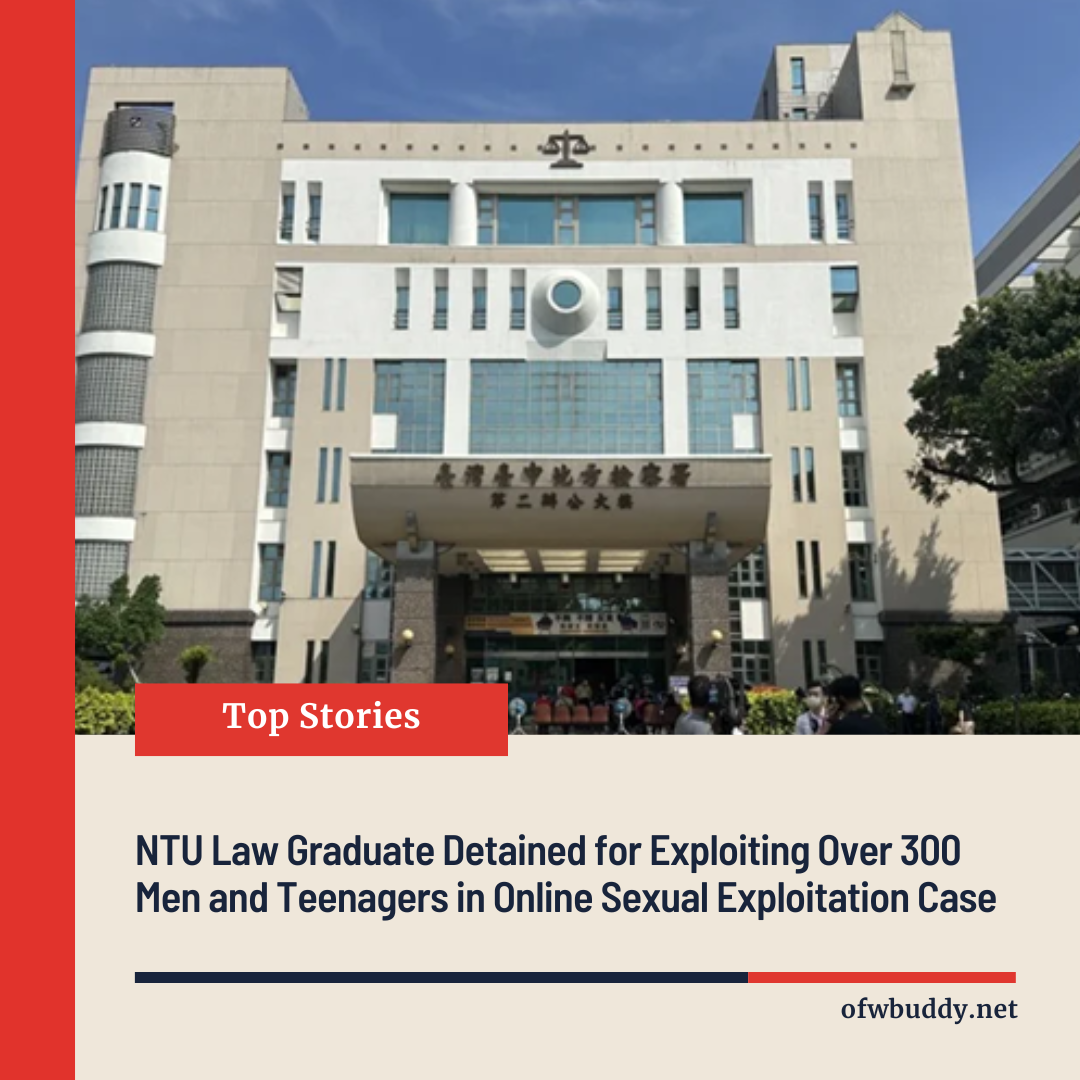 Taichung, Taiwan (October 3, 2025)— Prosecutors have filed charges against a male student surnamed Hong, a graduate of National Taiwan University’s College of Law, for orchestrating one of Taiwan’s largest online sexual exploitation cases, involving over 300 men and teenagers.