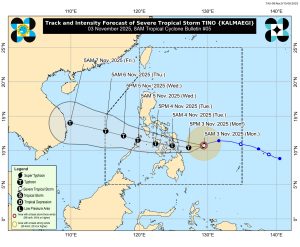 The Philippine Atmospheric, Geophysical, and Astronomical Services Administration (PAGASA) reports that Severe Tropical Storm “TINO” (international name: Kalmaegi) continues to strengthen as it moves west-southwestward, now nearing typhoon intensity.