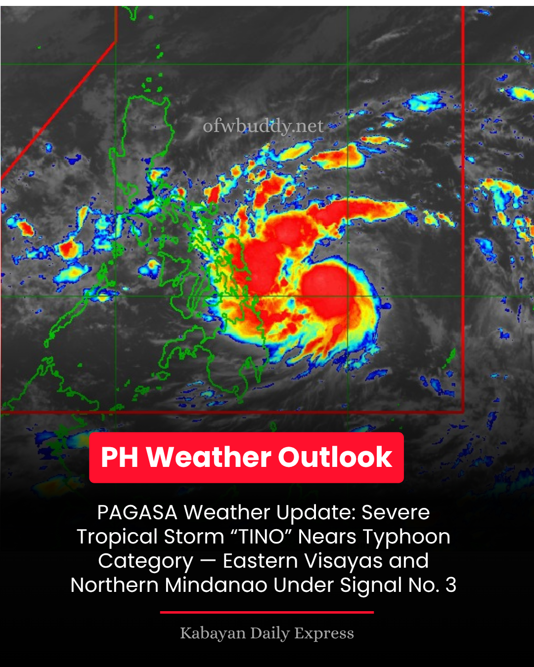 🌪️ PAGASA Weather Update: Severe Tropical Storm “TINO” Nears Typhoon Category — Eastern Visayas and Northern Mindanao Under Signal No. 3