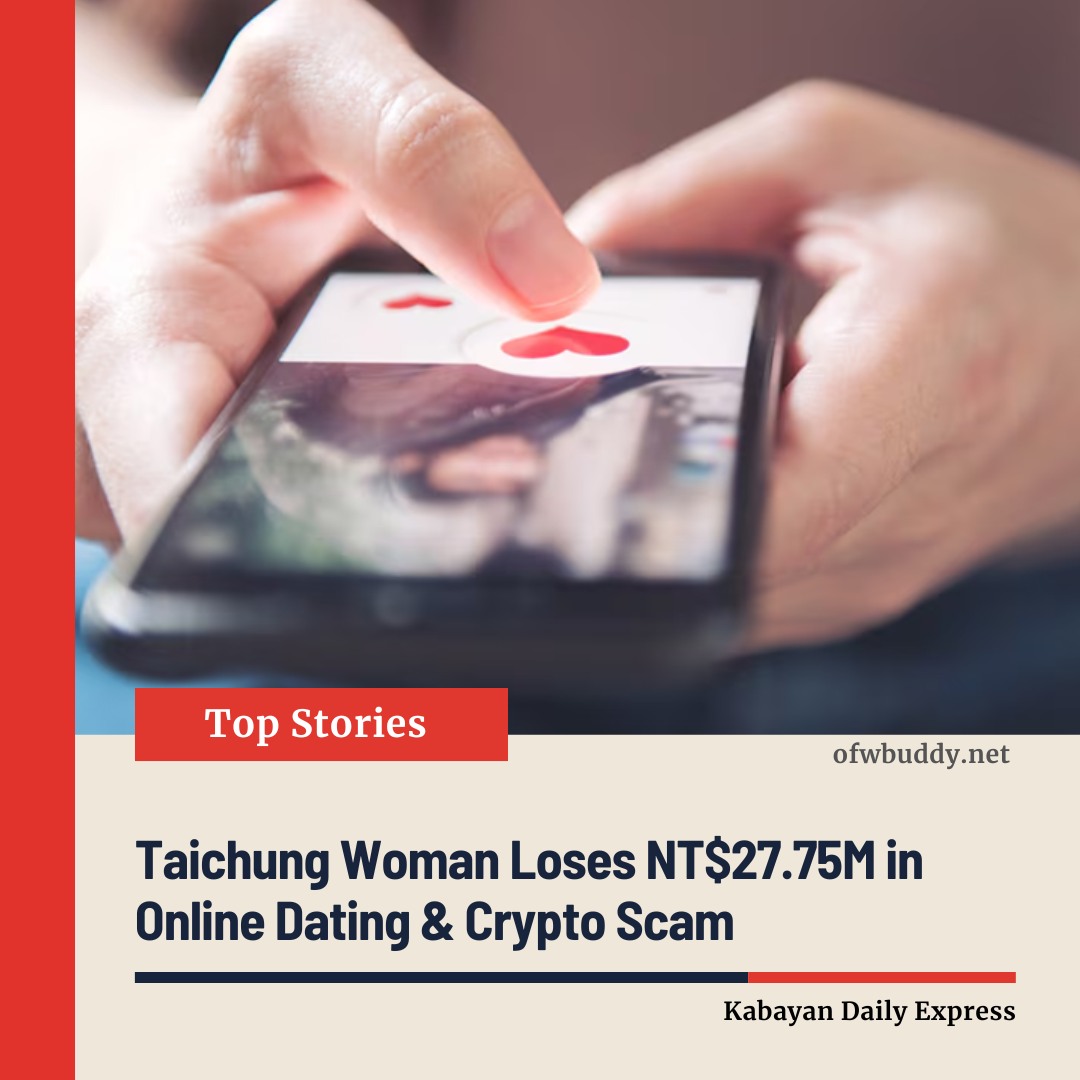 A 60-year-old woman in Taichung City fell victim to an elaborate online dating scam, losing NT$27.75 million over several months through a combination of money transfers, in-person meetings, and cryptocurrency trading. Authorities say the scam involved multiple perpetrators, including money mules and cryptocurrency dealers.