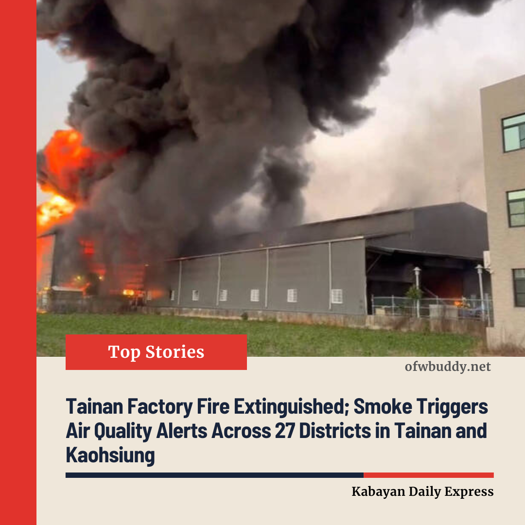 A major factory fire erupted in Zhongrong Village, Anding District, Tainan City at around 5:00 p.m. on Thursday, prompting a large-scale emergency response. Firefighters managed to bring the blaze under control by 6:00 p.m., and the fire was officially extinguished at 8:12 p.m.