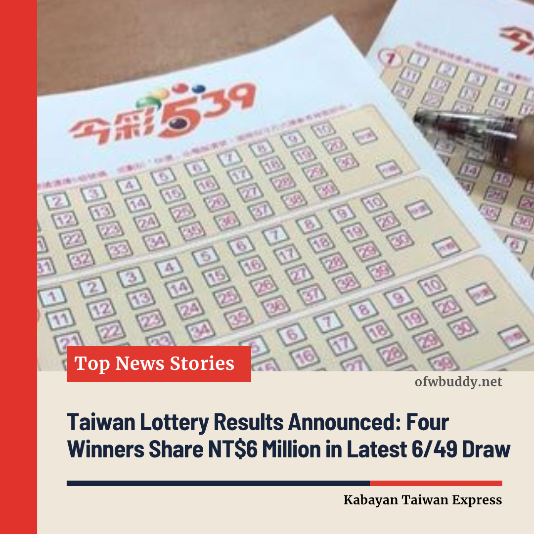 Taiwan Lottery Results Announced: Four Winners Share NT$6 Million in Latest 6/49 Draw ππΉπΌ