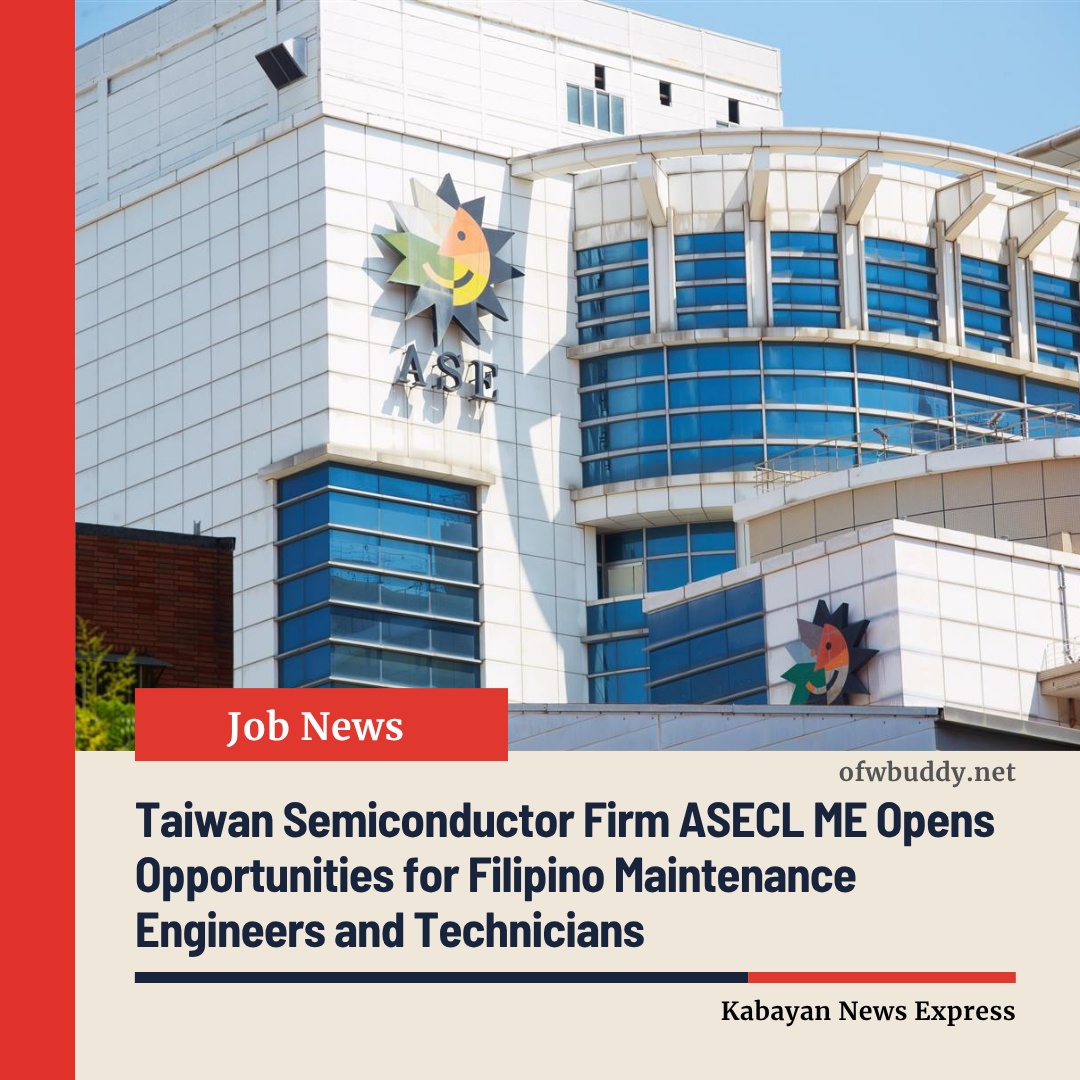 Manila, Philippines — Filipino skilled workers in the semiconductor industry are being offered new overseas employment opportunities as ASECL ME (ASE Chungli), a leading semiconductor company in Taiwan, begins recruitment for Maintenance Engineers and Technicians.