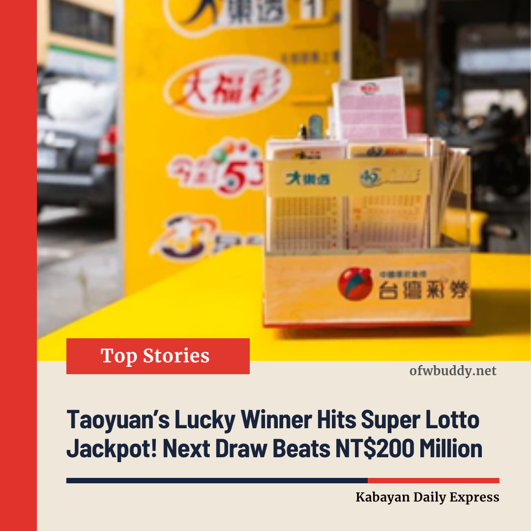 Taiwan Lottery officials announced Tuesday night that the Super Lotto (Da Lotto) jackpot for Draw No. 114000114 was claimed by a single winning ticket sold in Taoyuan City, while the Daily Cash 539 draw on the same day produced no top prize winner.