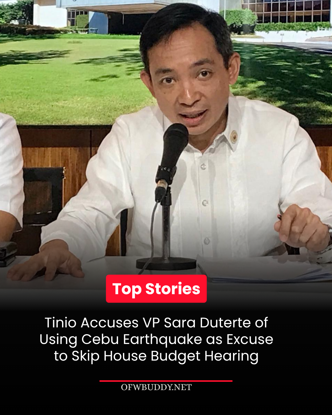 ACT Teachers Party-list Representative Antonio Tinio has accused Vice President Sara Duterte and her camp of using the Cebu earthquake as a justification for her absence during the House of Representatives’ budget deliberations, claiming she never intended to attend in the first place.