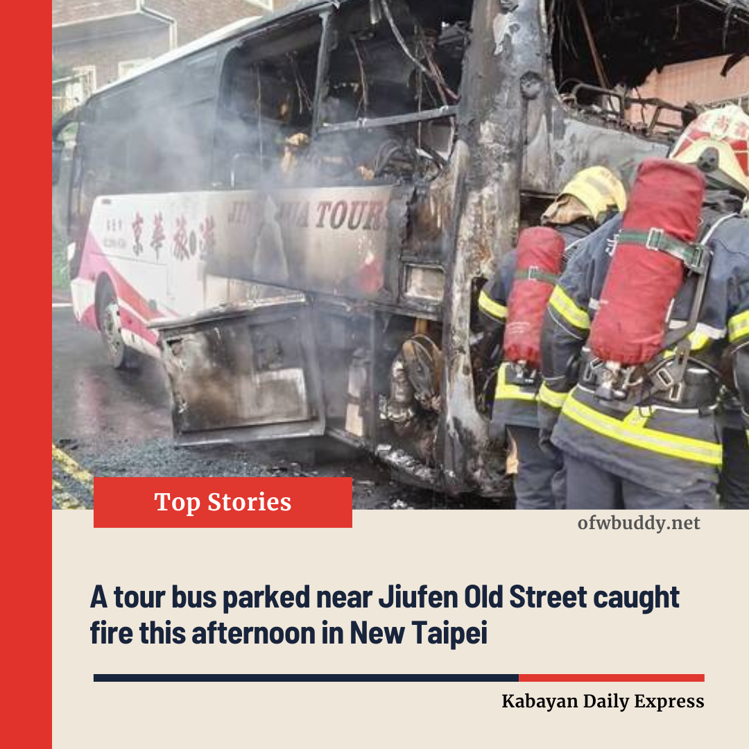 Police from the Jiufen station also responded to manage traffic in the area. The bus driver told authorities that the passengers were already off the vehicle when smoke and flames erupted. He added that the cause of the fire remains unknown. The tour company has since arranged for another vehicle to transport the tourists safely down the mountain.
